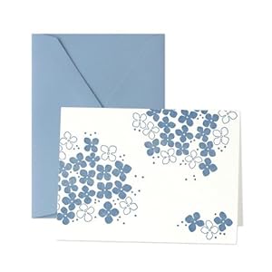 Our refreshing dalton blue envelope provides a welcome start to any correspondence you write on this enclosed note. Featuring a letterpress design of abundant french blue hydrangea blooms, the pearl white card is blank inside for you to share your own sentiments and thought.