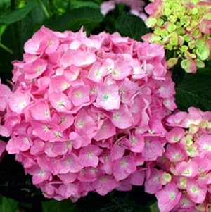 Hydrangea 'Let's Dance Moonlight ' PPAF, Common Name: Big Leaf Hydrangea. LETS DANCE is a new series that represents the next generation of reblooming hydrangea! These floriferous varieties bloom on both new wood and old, which creates an incredible display of color. Hydrangea LET'S DANCE Moonlight is strong rebloomer with large, rich rose-pink (or blue depending upon pH) mophead flowers that are held on sturdy stems. Moonlight has a wonderful compact habit, growing to only 2-3 feet tall. In autumn, the healthy foliage takes on rich bronze red tones for additional interest late in the season. Primary Color: Deep Pink/Rose. USDA Hardiness Zone 5-10. Height: 2-3 Feet. Spread: 3 Feet. The plant you will recieve is growing in a 3 1/2" pot.